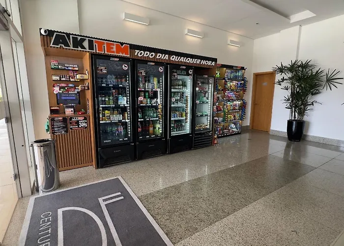 Eine Küche mit einem Kühlschrank und Küchenutensilien steht den Gästen zur Verfügung. Das Restaurant Five Sport Bar Brasilia, wo moderne Gerichte serviert werden, liegt ein paar Schritte entfernt von der Villa in Aguas Claras. Von der 1-Zimmer-Villa Incrivel Apto Df Plaza Com Vista sind es 23 Minuten mit dem Auto zum Flughafen Brasilia.